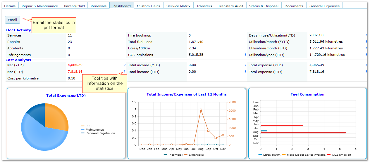 2. Viewing/Emailing Statistical Snapshot in Asset Dashboard