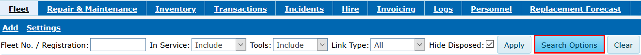 Fleet>>Transfers Tab