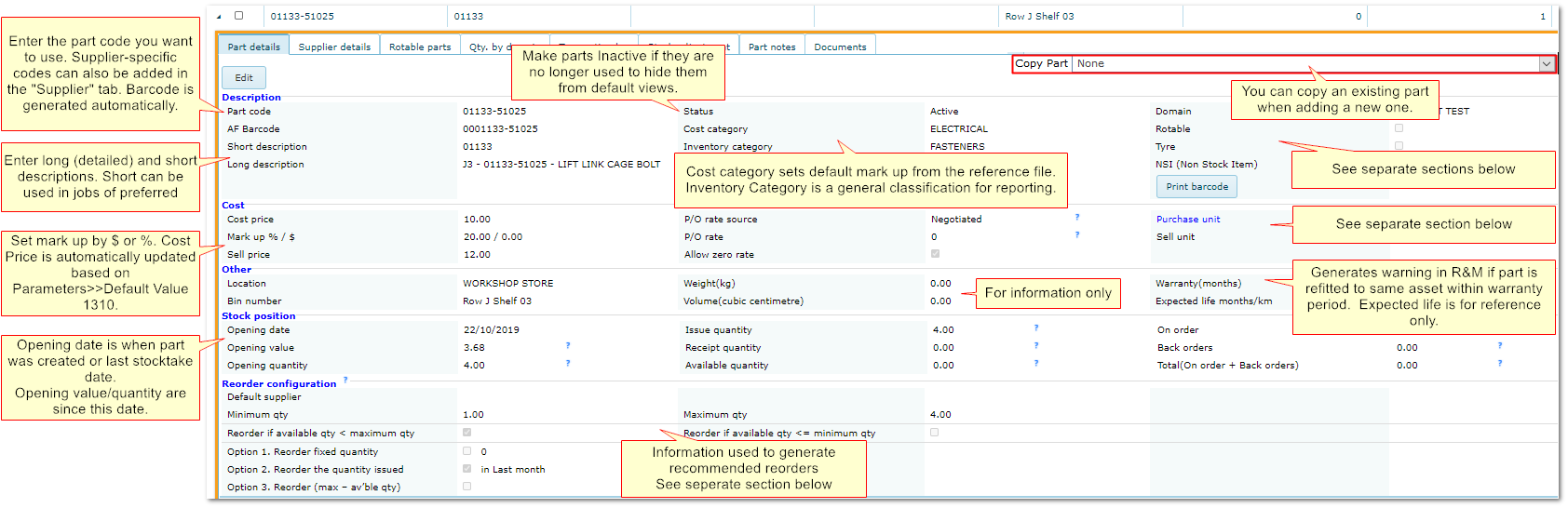 If a supplier-specific part number is entered, when searching for a part, AusFleet checks for any matching supplier part codes and AusFleet part codes.