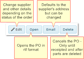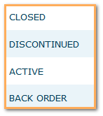 Set using the "Discontinue" button if the PO is to be cancelled (all parts must be deleted first)