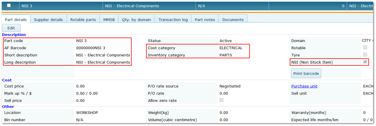 •NSI can be located in the parts list using the NSI filter on the Inventory menu.
