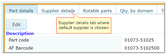 This defaults to the one selected in the Supplier tab for the part. A different supplier can be chosen when generating orders