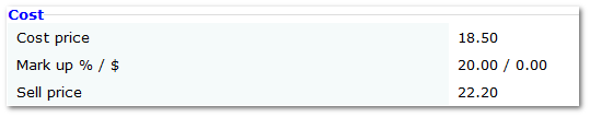 •Mark up can be set by a fixed $ amount or % of cost price