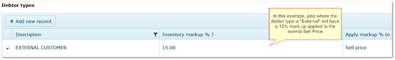 If the debtor on the job does not have a Debtor Type or the Debtor Type mark up is 0, then the mark up in the part details is used instead (option (a)).