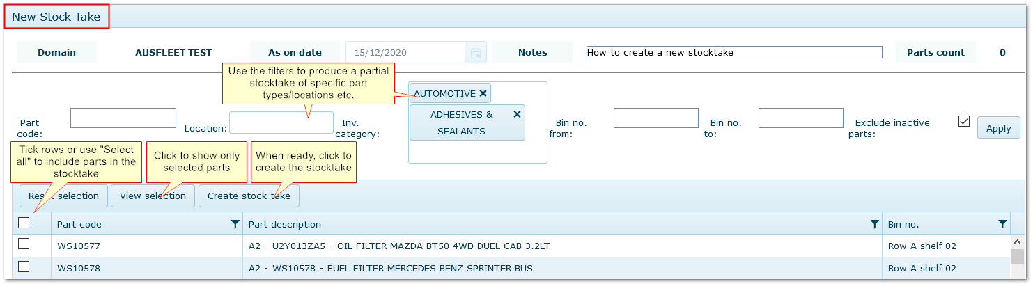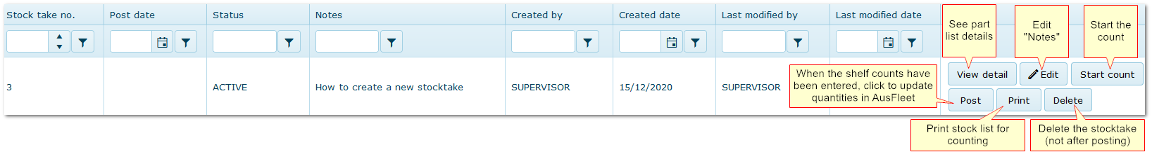 3. Creating a New Stocktake
