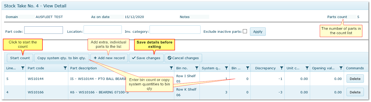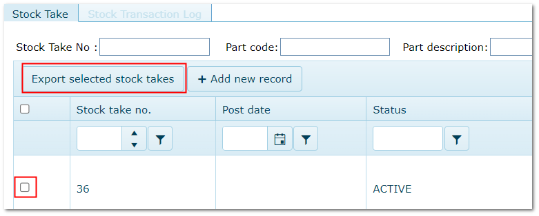 Click "Add New Record" to Open The New Stock Take Screen