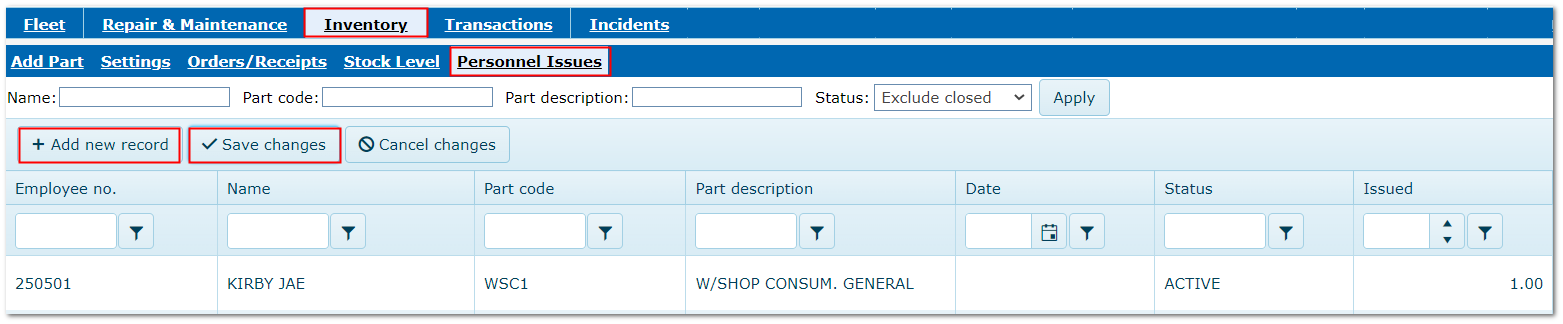 •This allows parts to be issued to specific personnel and is designed for managing uniforms, PPE, overalls etc.