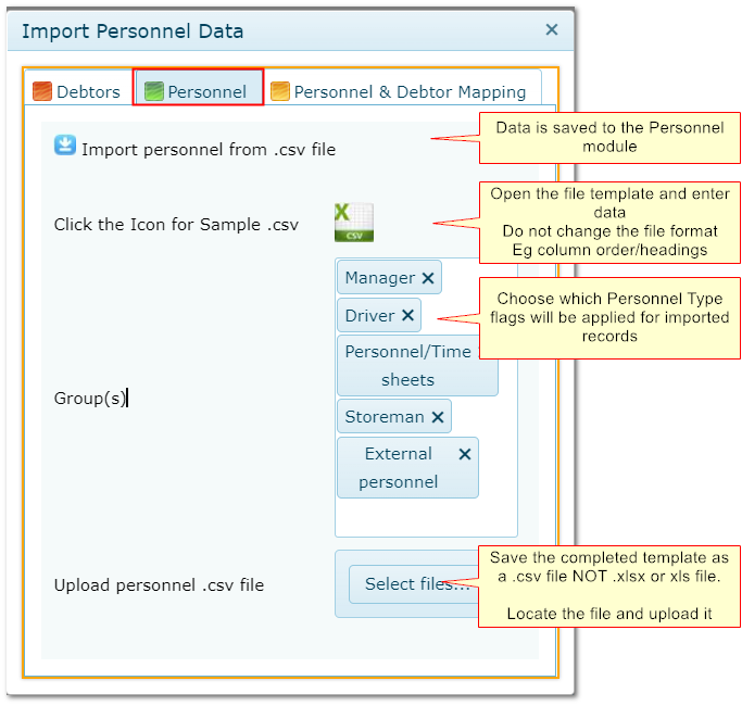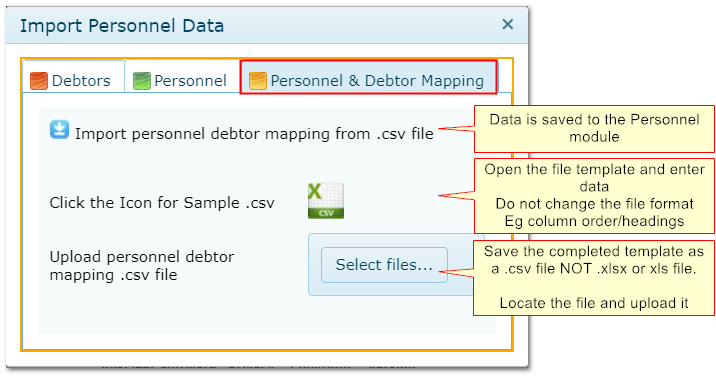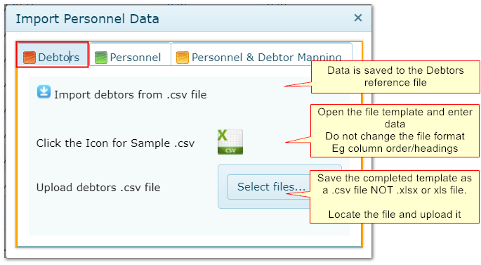 Interfacing>>Import Personnel Data>>Debtors