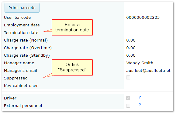 Enter a termination date in the Personnel record if they have left the organisation. This ticks the Suppress flag automatically.
