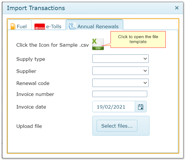 •Each file to be imported must contain only one renewal type E.g. Insurance