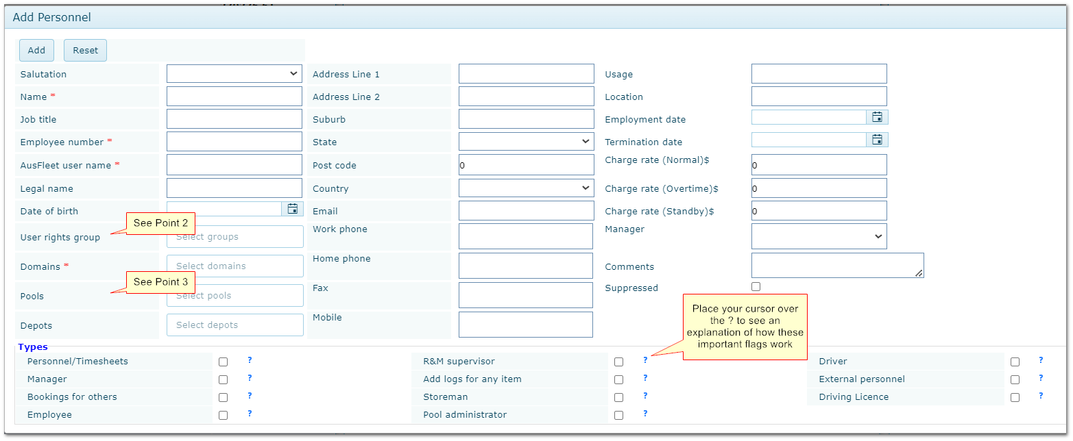 •The Personnel Type flags are very important and should be reviewed and set according to the person's role and system use