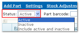 Inactive parts are hidden from normal view and cannot be selected for purchase orders, issues etc.