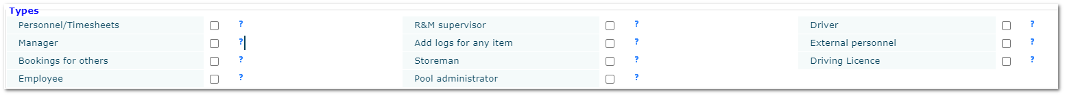 They ensure only the right people appear in menus for selection (e.g. mechanics when adding timesheets) and/or control what they can do in AusFleet (e.g. adding logs for other people).