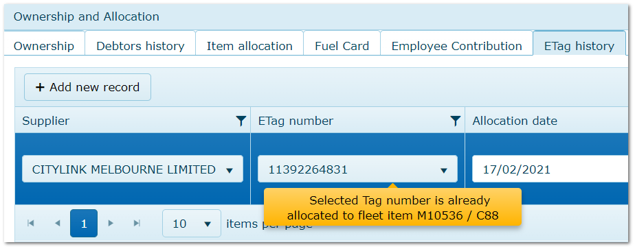 To see allocation history for an individual asset: Fleet>>Ownership & Allocation>>ETag History