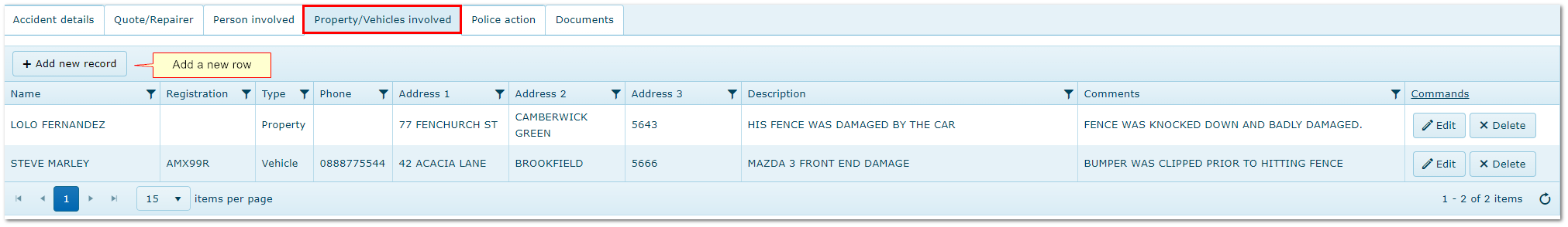 Search bar: Search for records using various values, including any third party's vehicle registration (persons involved and property/vehicles involved)