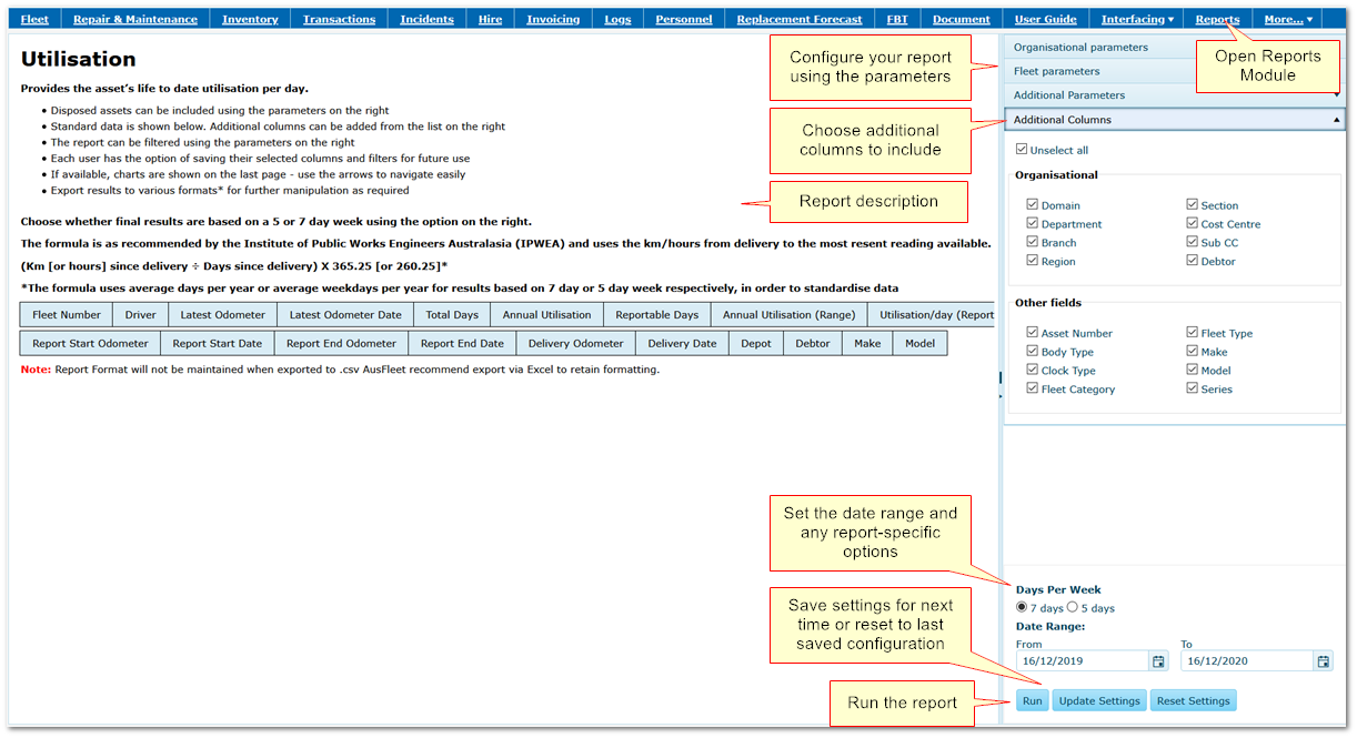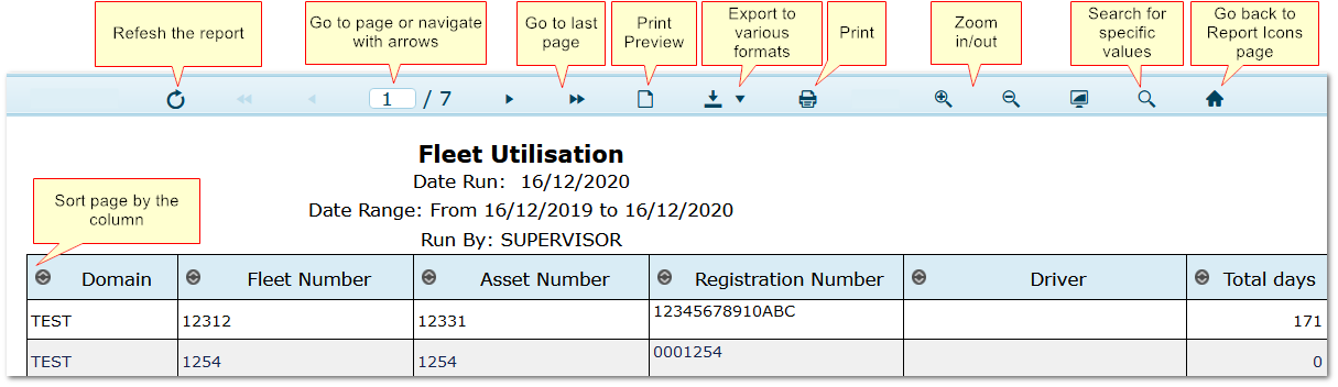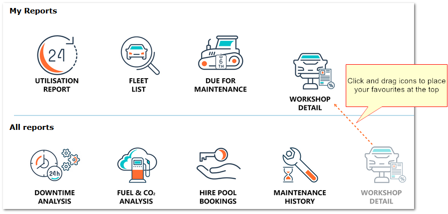 Place your mouse over the icons to see a tool tip with a brief description of the report.