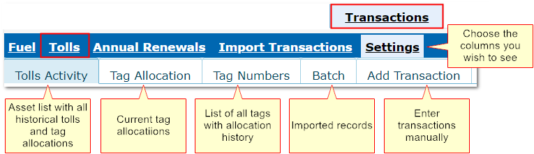 •Importing/adding toll transactions.