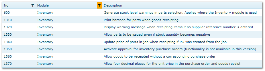 •The default can be changed for individual parts in the Inventory module but having defaults can reduce data entry and user error