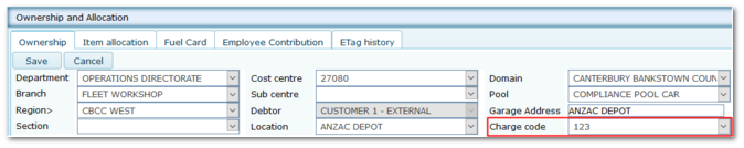2.Allocate charge codes to assets in Fleet>>Ownership & Allocation