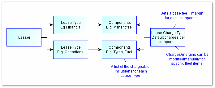 Enter the Lessors you use. Link the Lease Types created earlier to each Lessor based on the products they supply. Each can have different pricing per component