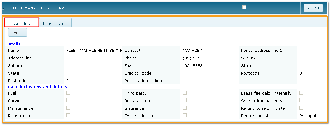 For any lease types, tick the "Leasing" flag so AusFleet can manage those vehicles accordingly E.g. preventing disposal if a lease is current.