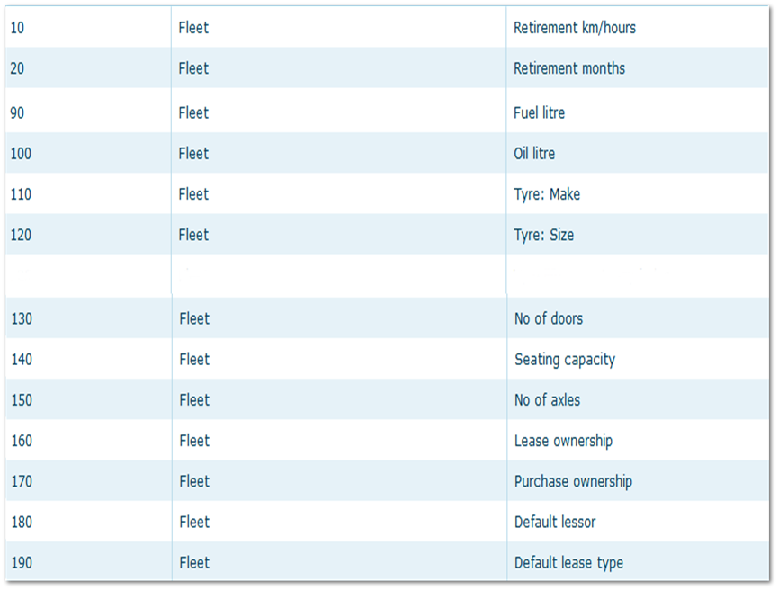Fleet references may be created in any order but if you wish to attach service regimes it is better to add those first.