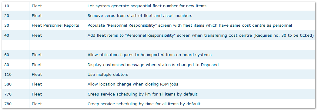 Hire Parameter 210 also affects fleet module - choose whether to use odometer readings from Hire module in calculating utilisation.