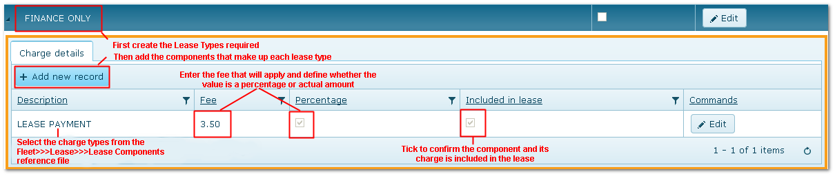 •The charges for components will be automatically populated based on the Lease Charge Type selected