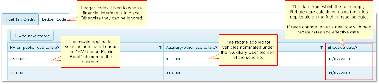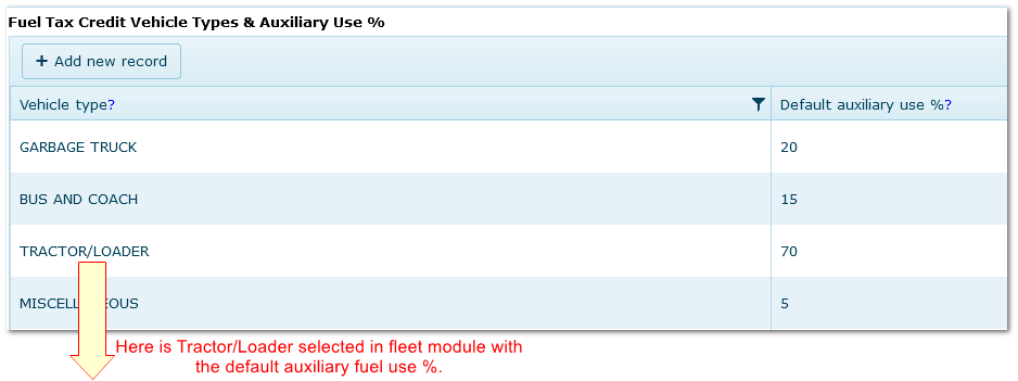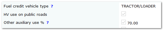 The percentages of fuel use to be claimed under the scheme are applied using "Fuel Tax Vehicle Type" below.