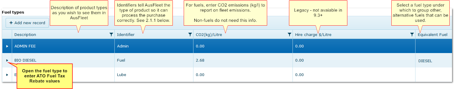 •They will be the descriptions you use when referring to fuel in AusFleet, regardless of supplier.