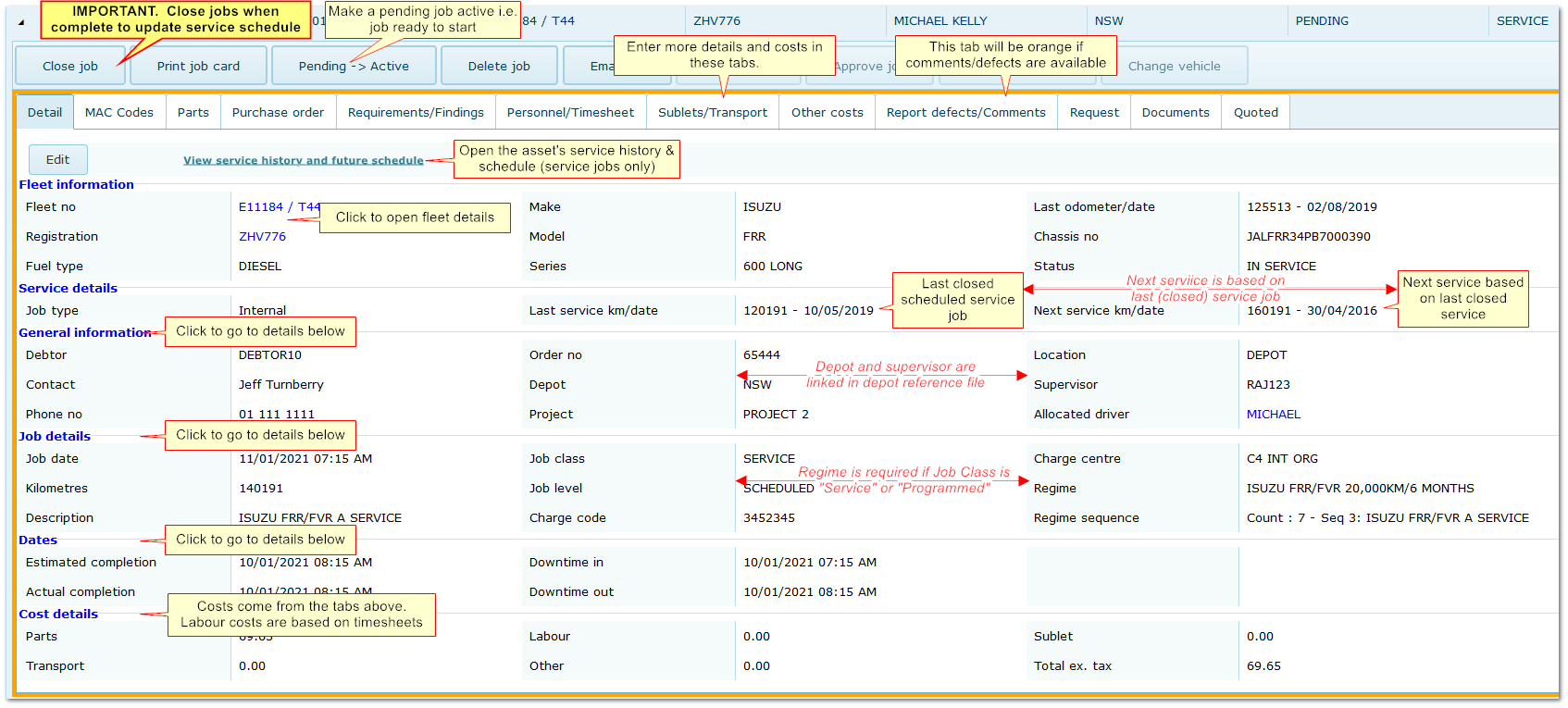 If the Job Class is Service or Programmed then a service regime is required. This will default based on the regime attached to the asset in Fleet>>MMSB, Categories and Flags.