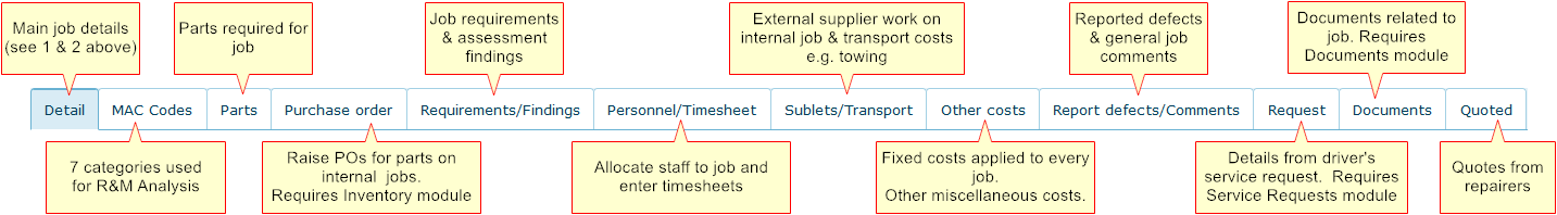 The external job card is slightly different and the "Purchase Order" tab cannot be accessed because parts are not ordered for external jobs.