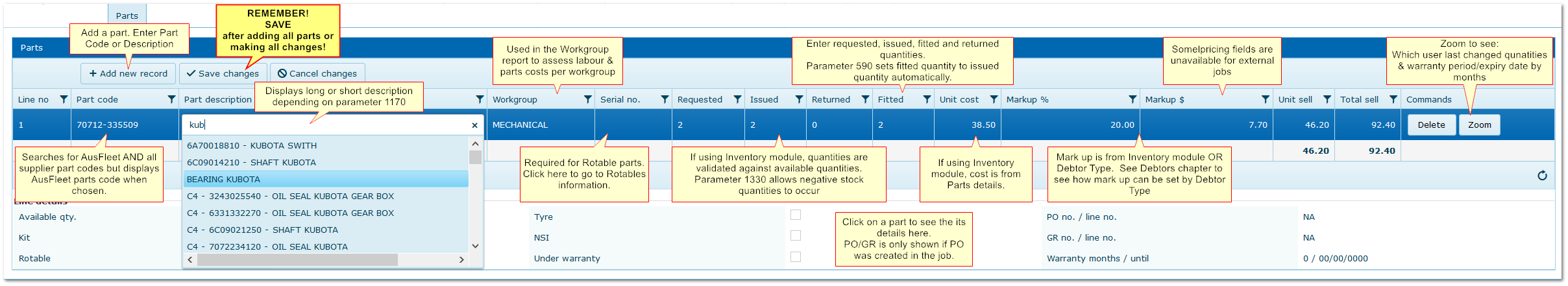 •The "Cost"is applied to the job when the "Invoiced" flag is ticked.