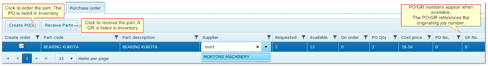 o"Suggested Supplier" can be attached "Job Classes" (More>>Reference Files>>Repair & Maintenance>>Job Class) to populate the field when Job Class is chosen E.g. Service: suggest Supplier A, Bodywork: suggest Supplier B