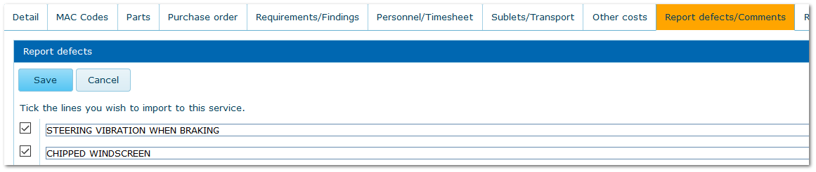 oOnly suppliers ticked as "Maintenance Services" in the Supplier Reference File will be shown in the Repairer menu