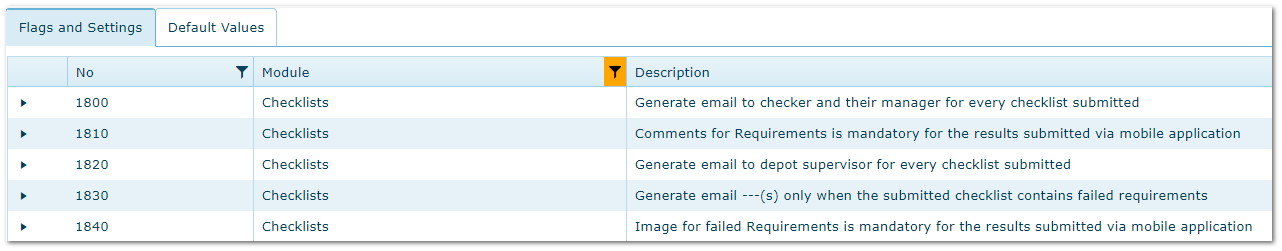 The following settings relate to Checklists module. A tool tip explaining the effect of each appears when the cursor is placed over them.