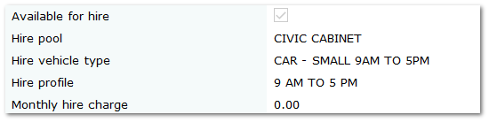 Only a Monthly Hire Charge can be entered and availability is set to all days/times