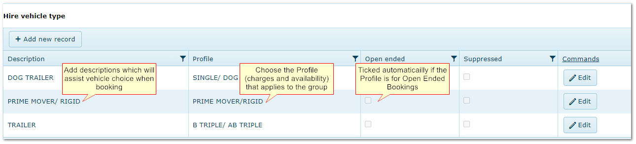 •Profile are attached via a Hire Vehicle Type (see below), making it easier to apply the same profile to different types of vehicle