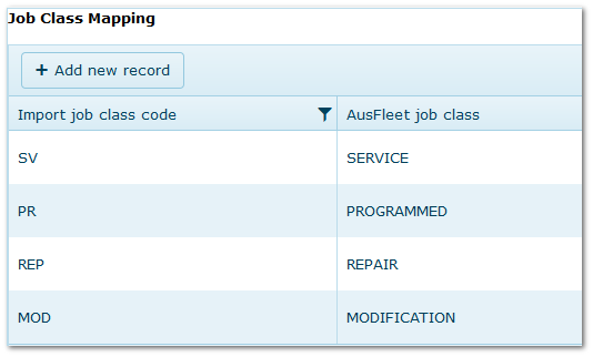 In the second columns select the corresponding AusFleet Job Class.