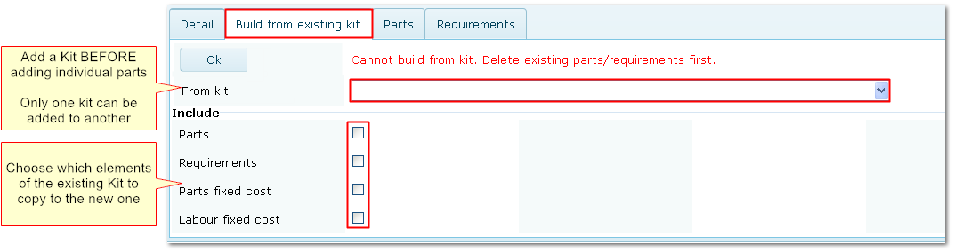 If so, create these first so you can add them to other Kits and avoid adding the parts/requirements one by one to every Kit