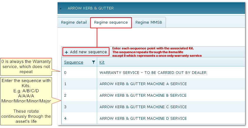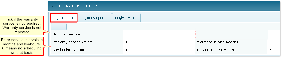 Regimes combine one or more Kits (containing parts and requirements) with time and/or utilisation intervals.