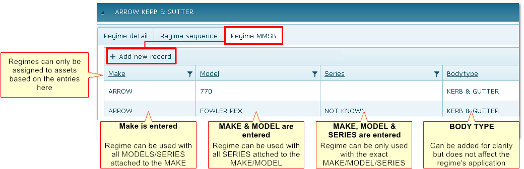 4. Choose the Makes/Models/Series Which the Regime Applies To