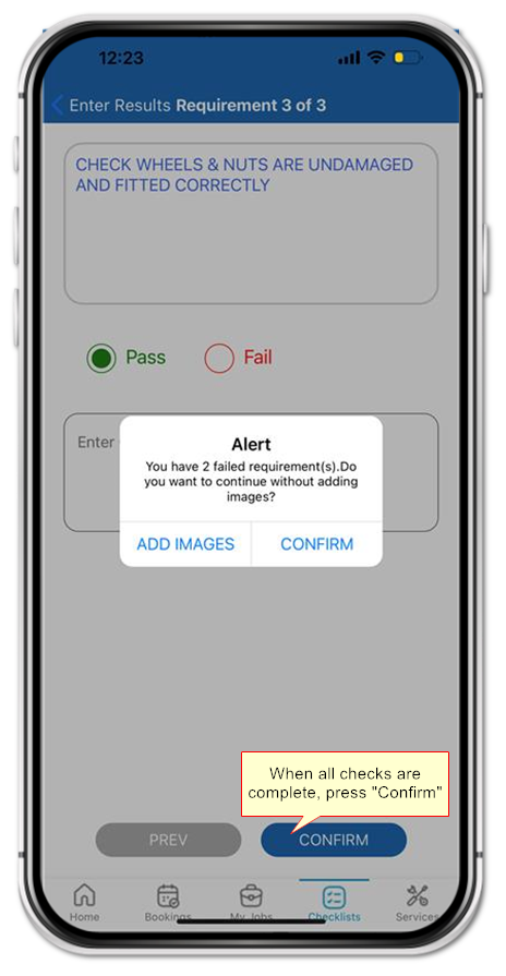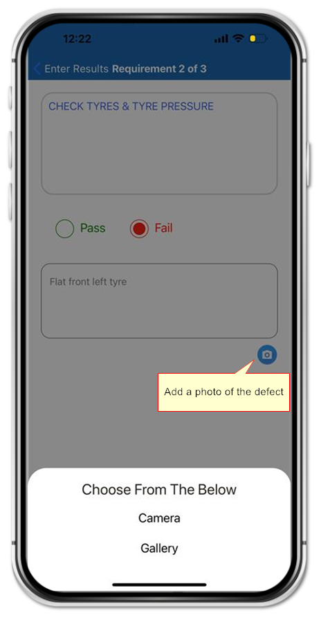 If you have reported a "Fail" you will be prompted to add a photo if you have not already done so.