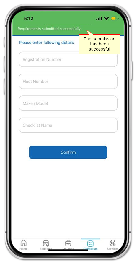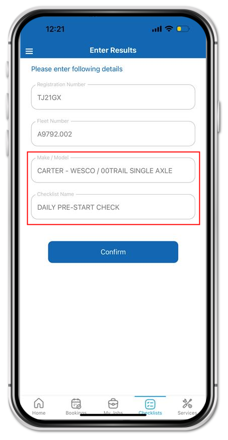 Check Make Model is correct. If a Checklist is not shown, contact your Fleet Department.