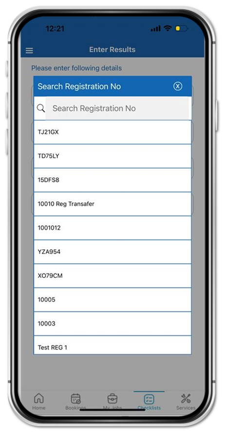Enter the registration or fleet number and confirm.
