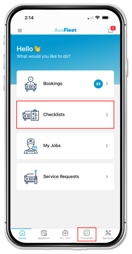 Select "Checklists" using either icon or the menu.