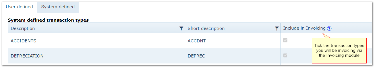 Some transaction types are system controlled and cannot be deleted or edited. Others may be created to suit your organisations requirements.