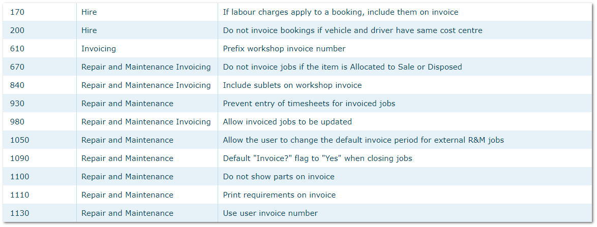 •Booking Invoice. This is used when invoicing Hire Bookings directly from the Hire module