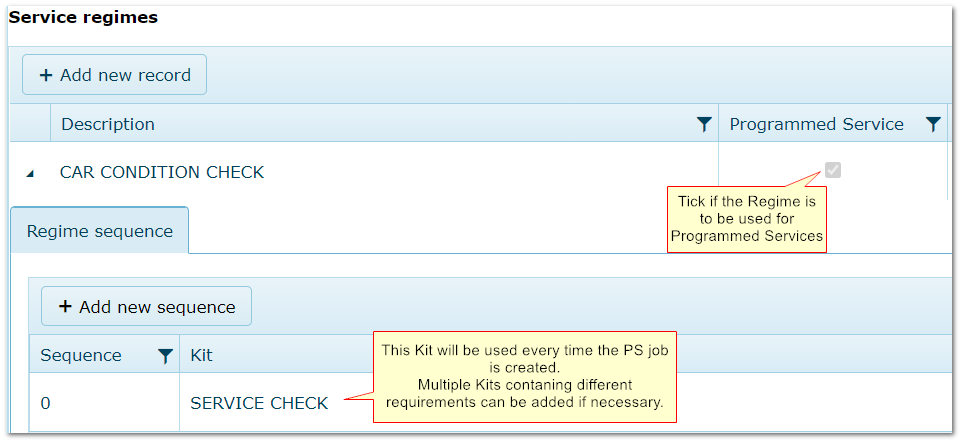Example of a Programmed Service Regime with a Single Kit Containing Requirements