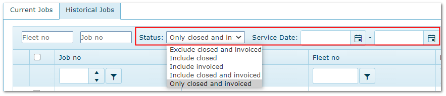 •Set the "Status" filter E.g. "Include Closed and Invoiced Jobs"